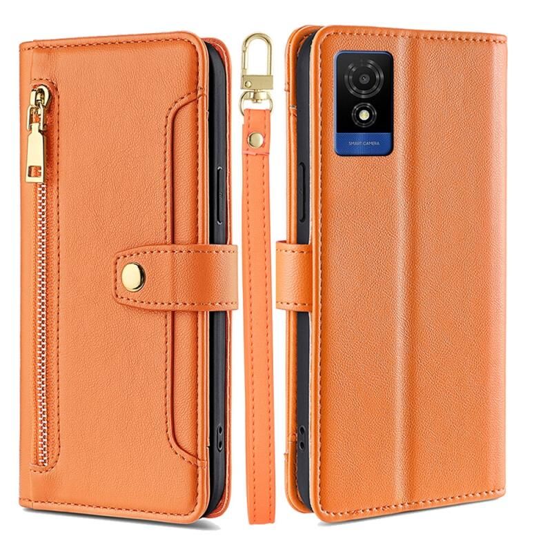 Για TCL 501 4G Πρόβατα Υφή Cross-body φερμουάρ πορτοφόλι δερμάτινη θήκη τηλεφώνου (πορτοκαλί)