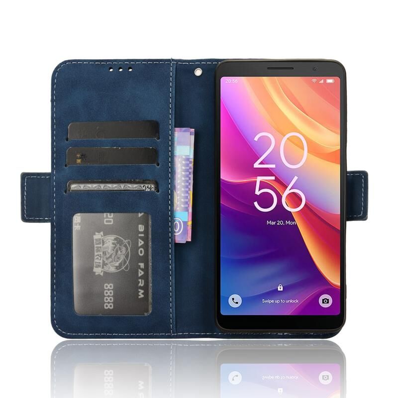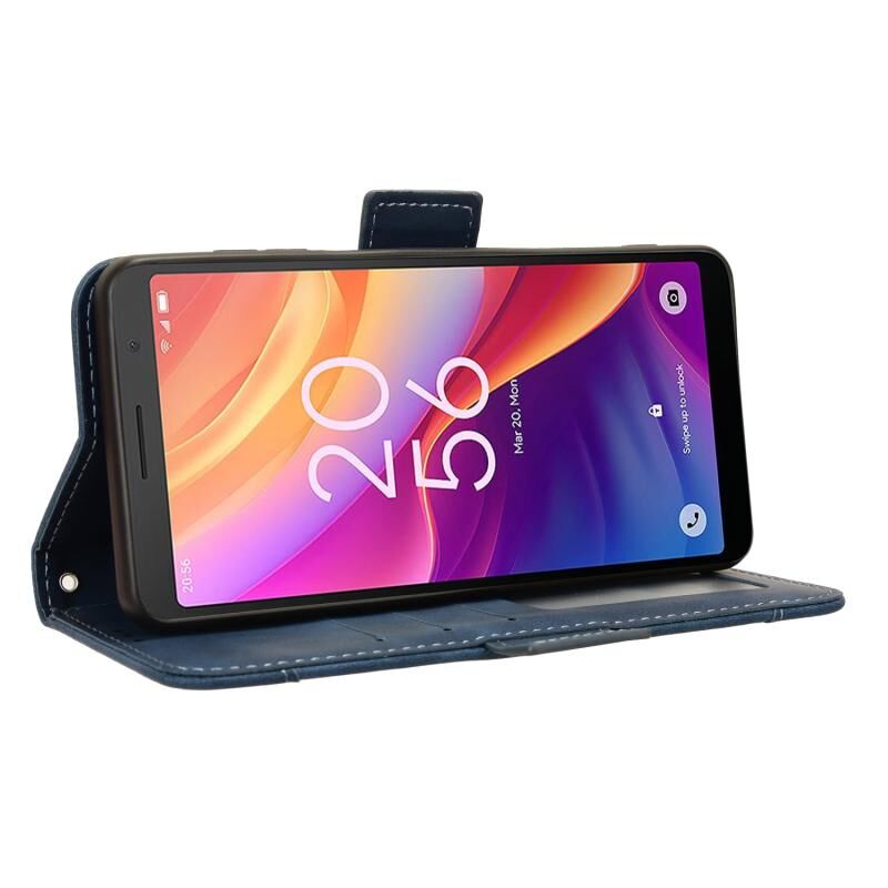Για TCL 501 4G δέρμα αίσθηση μοσχάρι υφή κάρτα υποδοχές δερμάτινη θήκη τηλεφώνου (μπλε)
