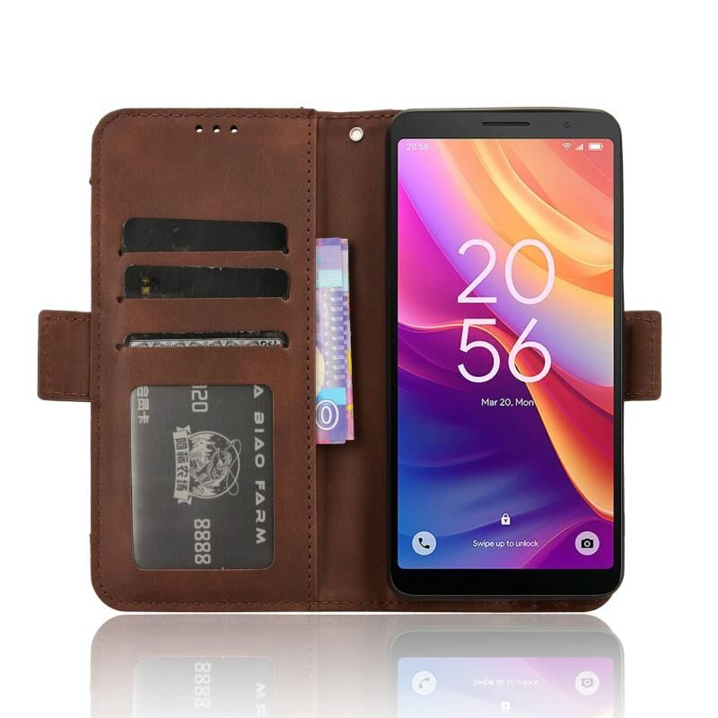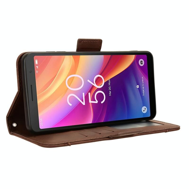 Για TCL 501 4G δέρμα αίσθηση μοσχάρι υφή κάρτα υποδοχές δερμάτινη θήκη τηλεφώνου (καφέ)
