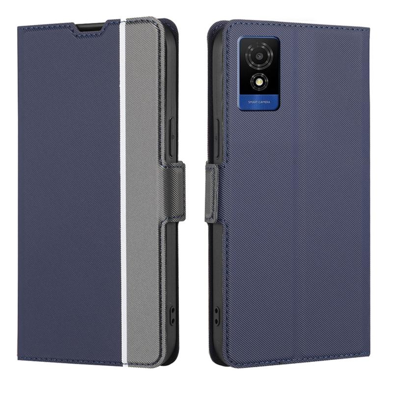 For TCL 501 4G Twill Texture Side Button Leather Phone Case(Blue)