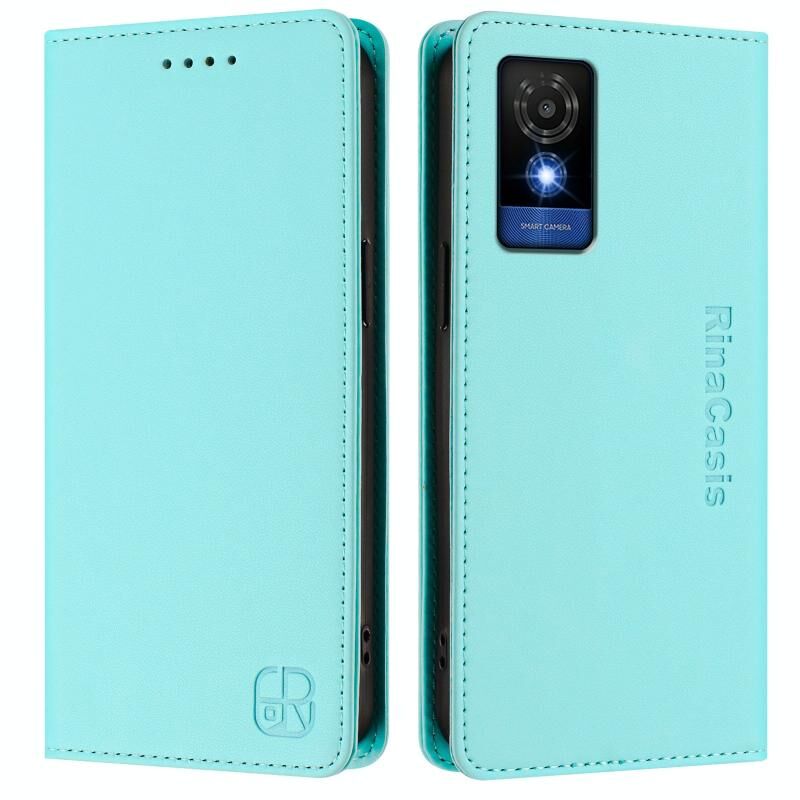 Θήκη τηλεφώνου δερμάτινη με μαγνητική απορρόφηση και προστασία RFID για TCL 501 RC01, διπλού τύπου (Μέντα Πράσινο)