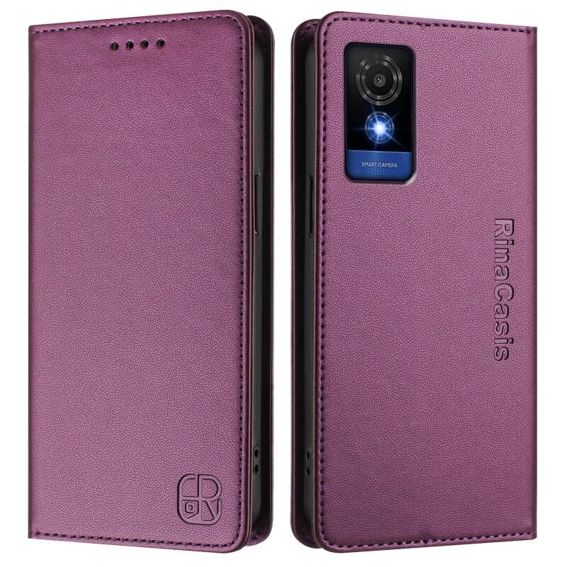 Θήκη τηλεφώνου δερμάτινη με μαγνητική απορρόφηση και προστασία RFID για TCL 501 RC01, διπλού τύπου (Βιολετί)
