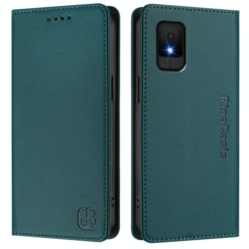 Θήκη τηλεφώνου δερμάτινη με μαγνητική απορρόφηση και τεχνολογία RFID για TCL 502 RC01, διπλού τύπου (Μέντας Πράσινο)
