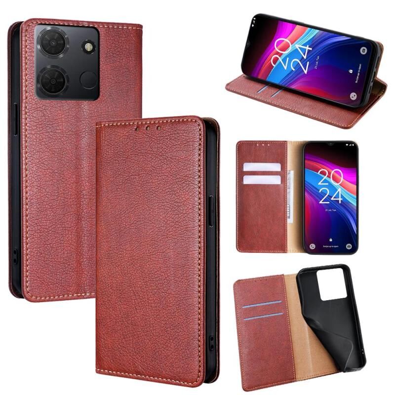 For TCL 503 4G Gloss Oil Solid Color Magnetic Leather Phone Case(Brown)