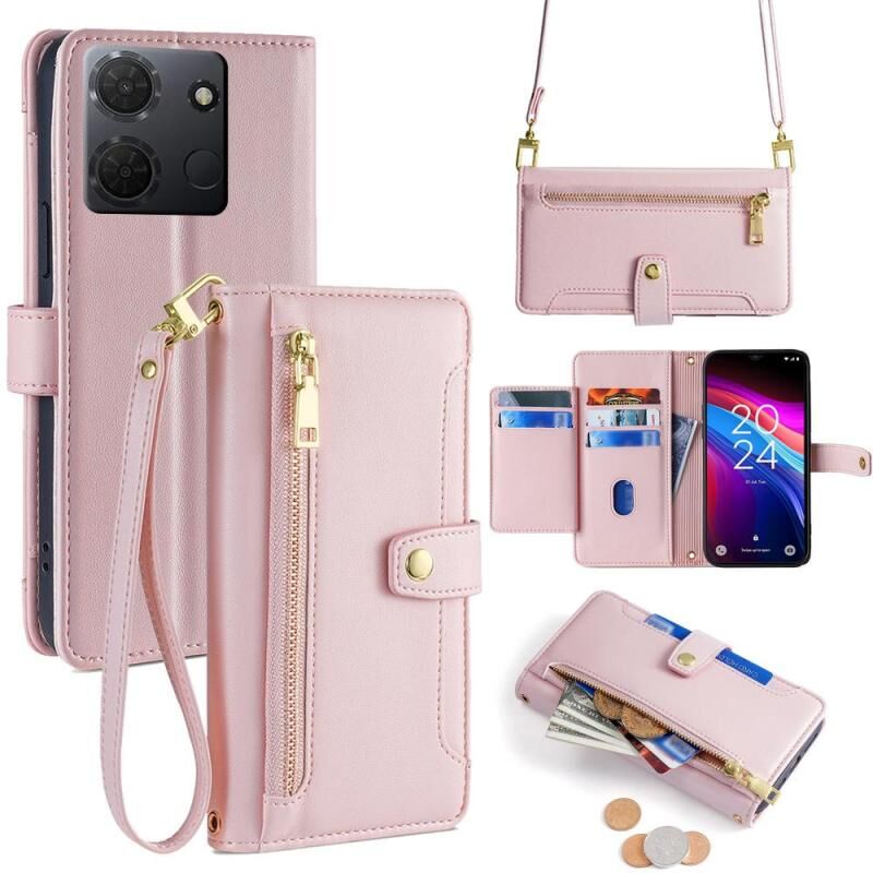Θήκη τηλεφώνου δερμάτινη με υφή προβάτου, διαγώνια, με φερμουάρ για TCL 503 4G (Μαύρο)