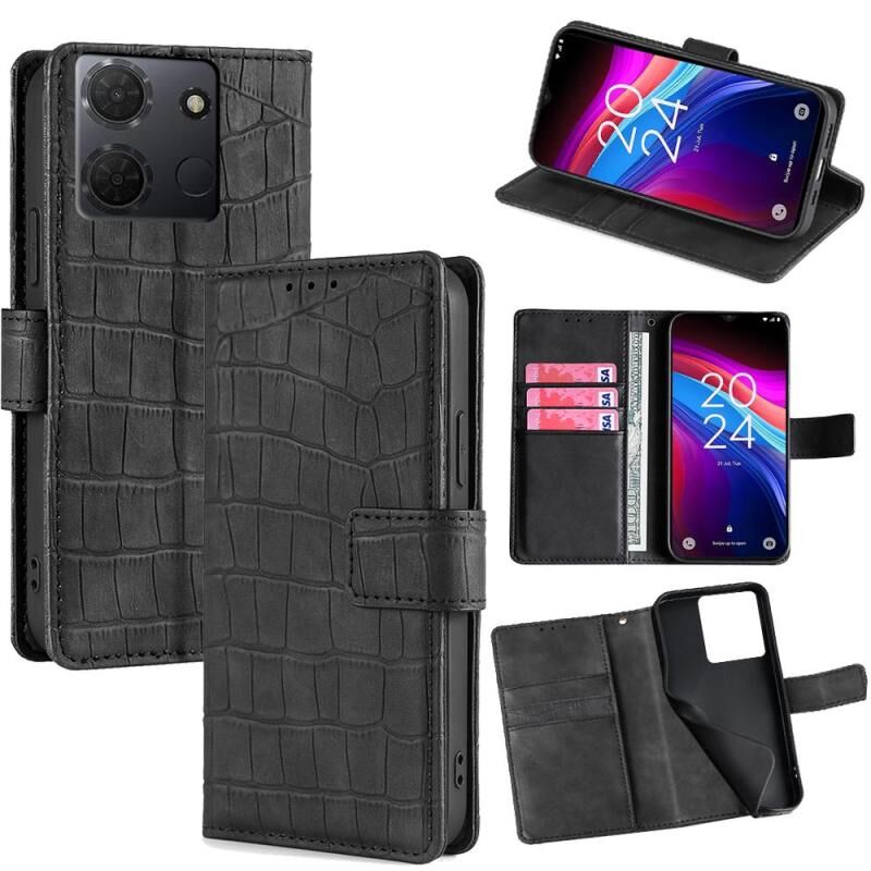 For TCL 503 4G Skin Feel Crocodile Magnetic Clasp Leather Phone Case(Black)