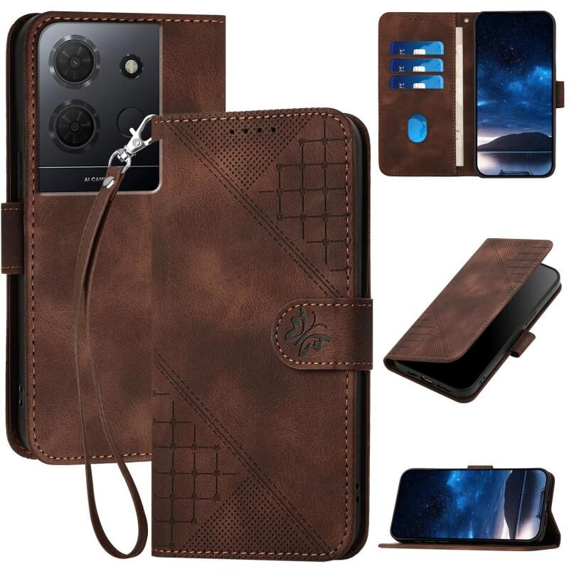 For TCL 503 Grid Butterfly Embossed Pattern Flip Leather Phone Case with Lanyard(Coffee)
