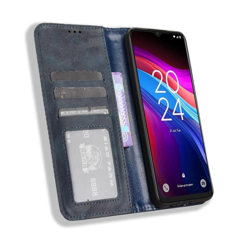 Για TCL 503 Μαγνητική πόρπη ρετρό υφή δερμάτινη θήκη τηλεφώνου (μπλε)