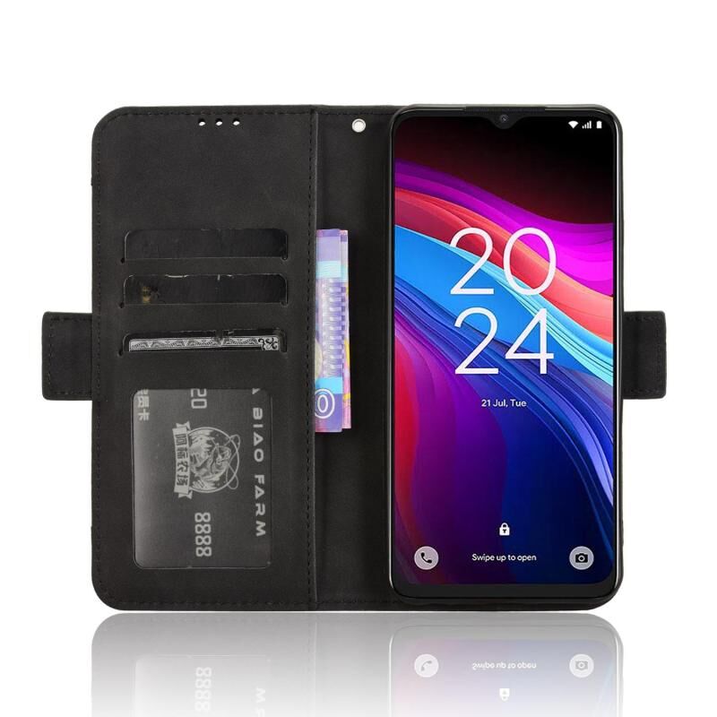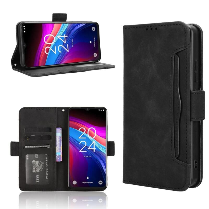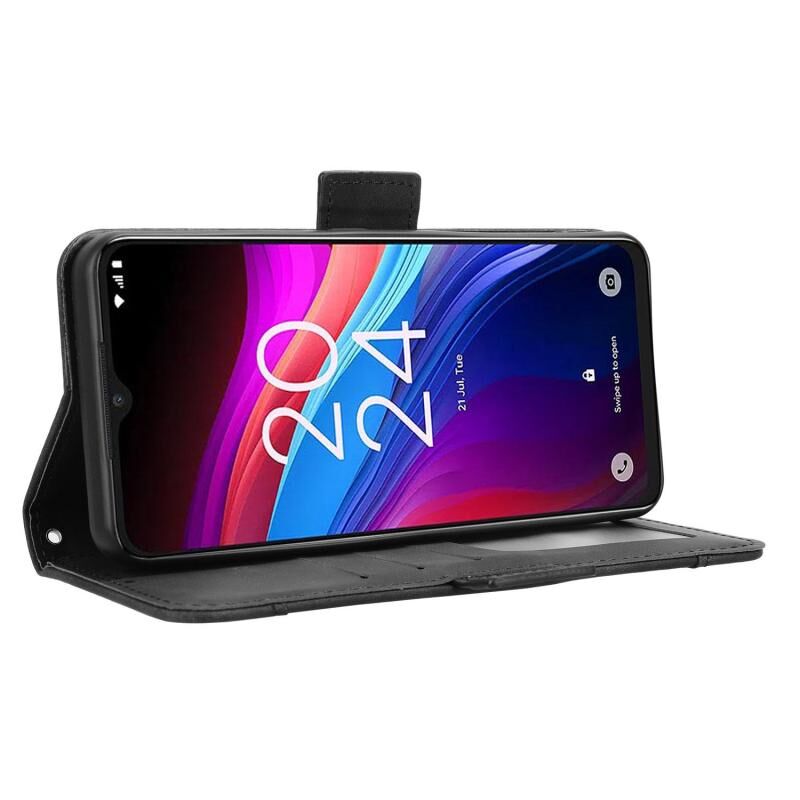 Για TCL 503 δέρμα αίσθηση μοσχάρι υφή κάρτα υποδοχές δερμάτινη θήκη τηλεφώνου (Μαύρο)