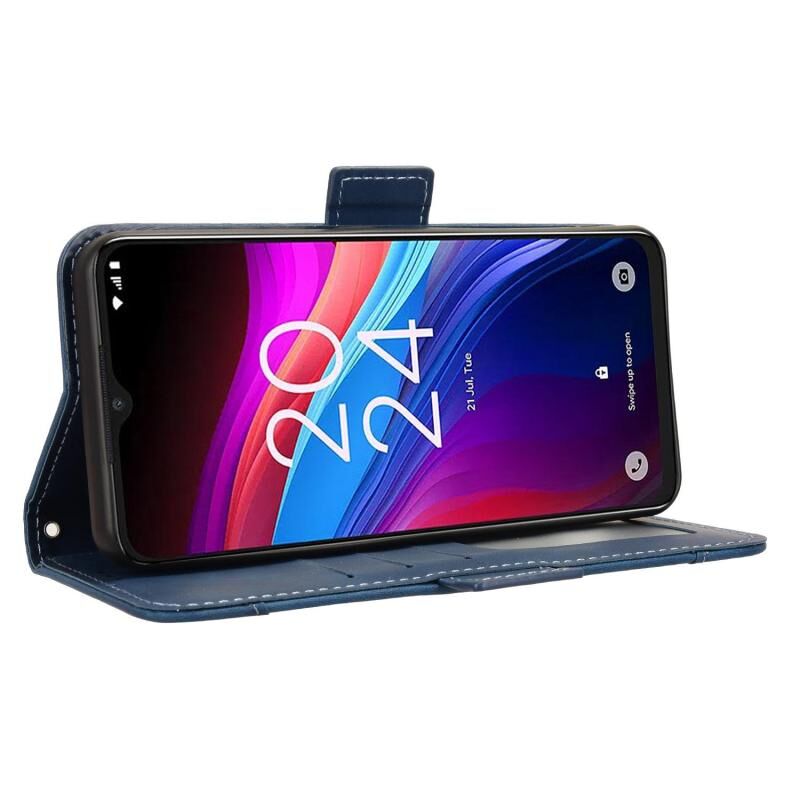 Για TCL 503 δέρμα αίσθηση μοσχάρι υφή κάρτα υποδοχές δερμάτινη θήκη τηλεφώνου (μπλε)