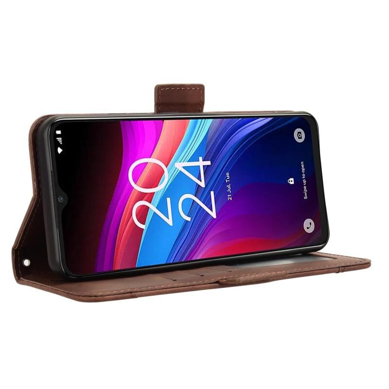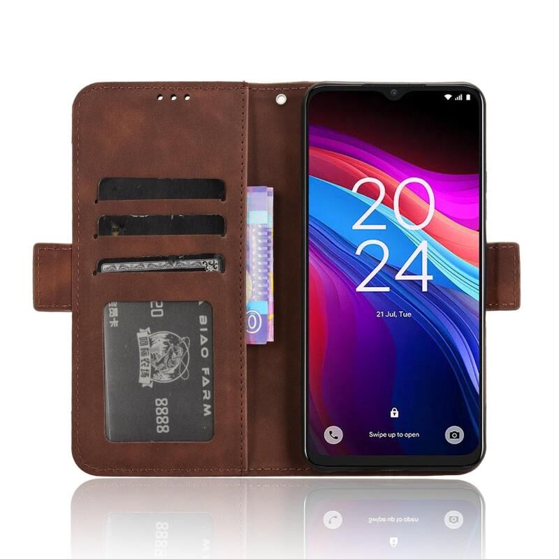 Για TCL 503 δέρμα αίσθηση μοσχάρι υφή κάρτα υποδοχές δερμάτινη θήκη τηλεφώνου (καφέ)