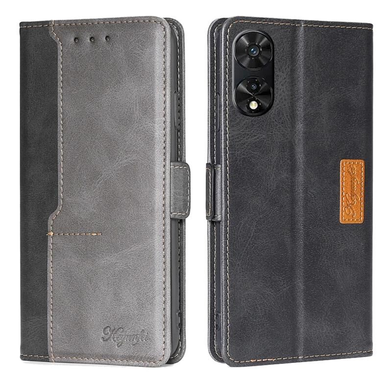 Για TCL 505 4G αντίθεση χρώμα πλευρά πόρπη δερμάτινη θήκη τηλεφώνου (μαύρο + γκρι)