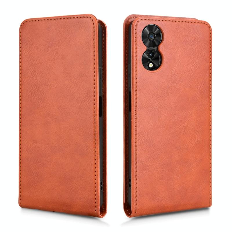 For TCL 505 4G Magnetic Vertical Flip Leather Phone Case(Brown)