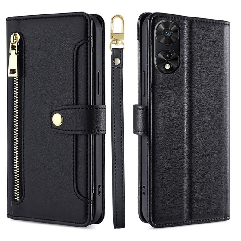 Θήκη τηλεφώνου δερμάτινη με φερμουάρ και σχέδιο προβάτου για TCL 505 4G (Μαύρο)