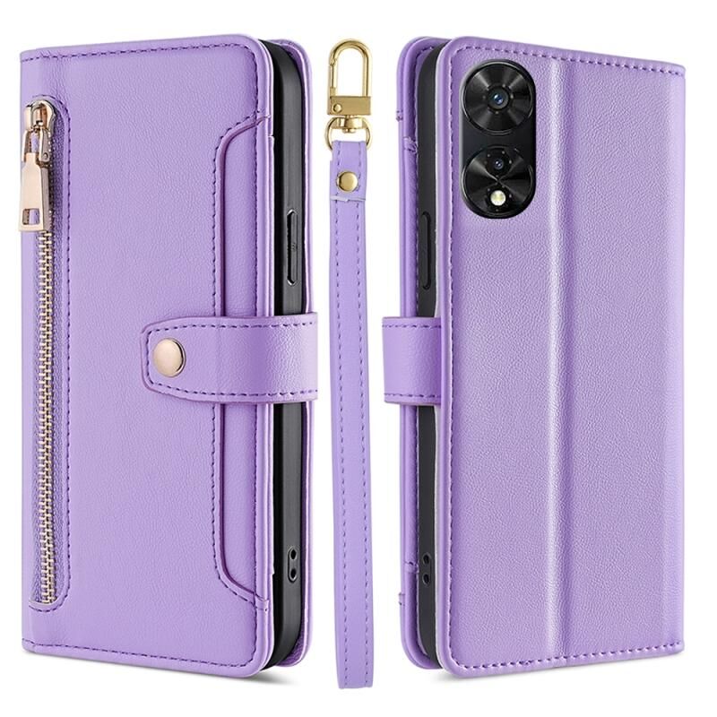 Θήκη τηλεφώνου δερμάτινη με φερμουάρ και σχέδιο προβάτου για TCL 505 4G (Μαύρο)