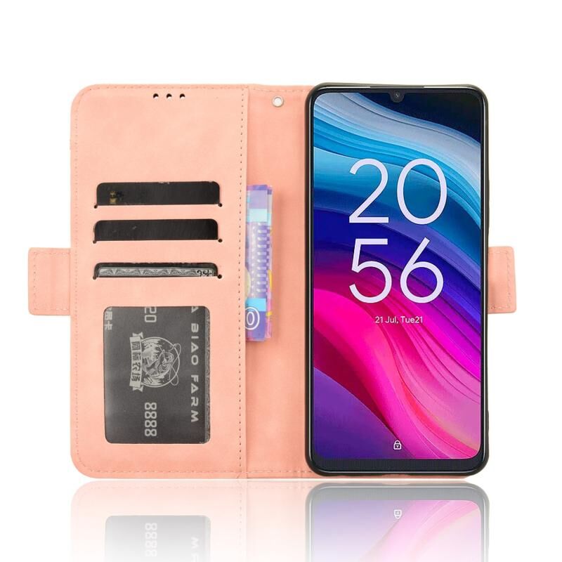 Για TCL 505 4G δέρμα αίσθηση μοσχάρι υφή κάρτα υποδοχές δερμάτινη θήκη τηλεφώνου (ροζ)