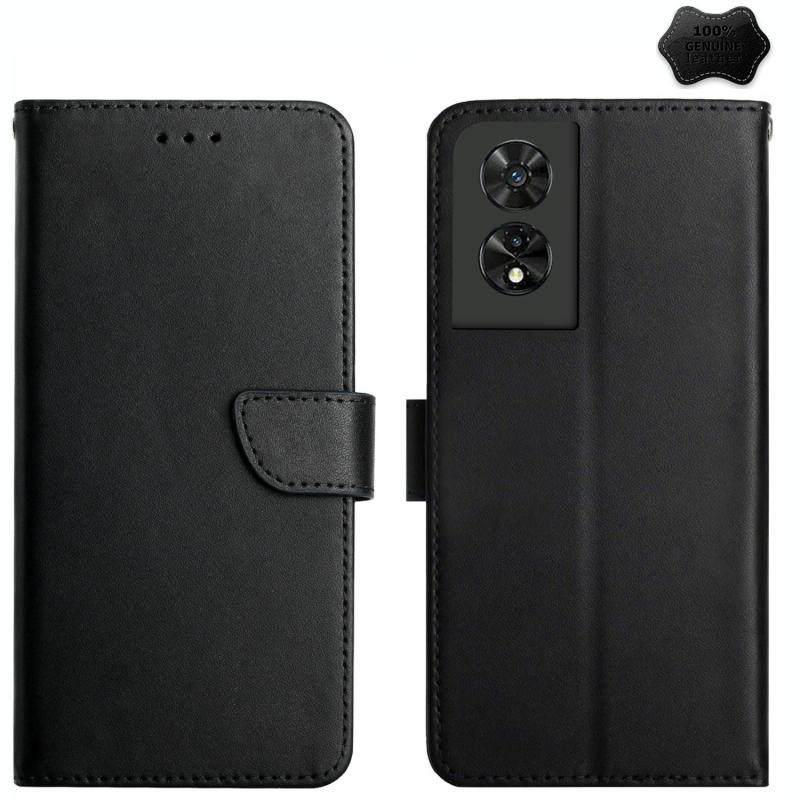 For TCL 505 Genuine Leather Fingerprint-proof Flip Phone Case(Black)