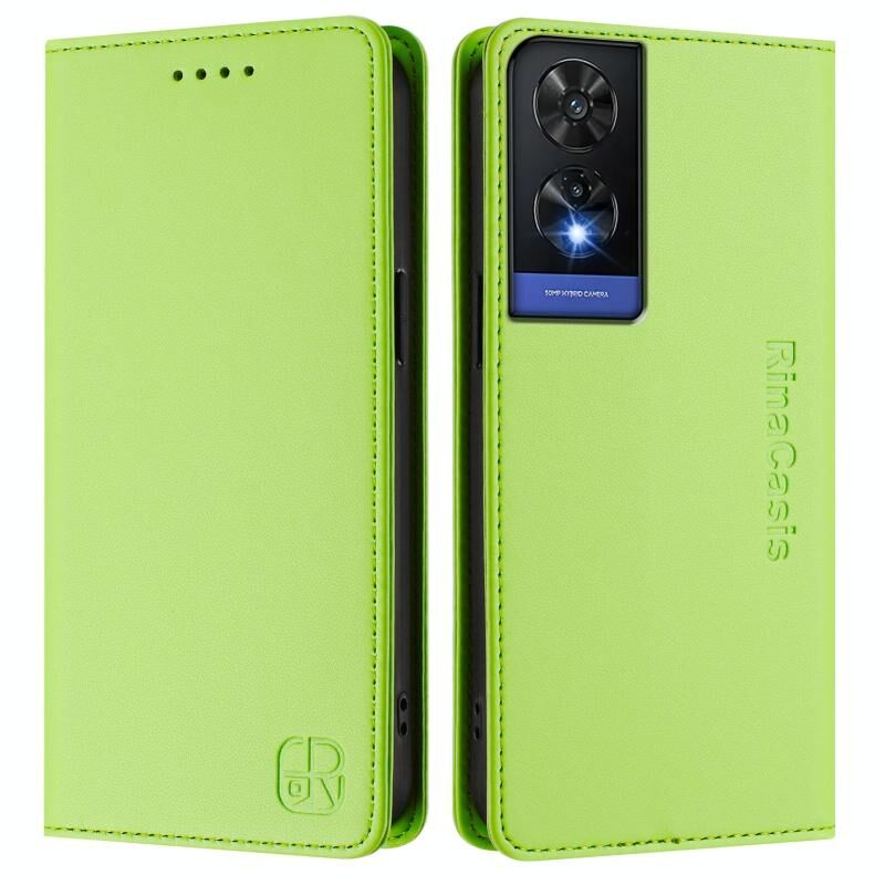 Θήκη τηλεφώνου δερμάτινη με μαγνητική απορρόφηση και προστασία RFID για TCL 505 RC01, διπλού τύπου (Μέντας Πράσινο)