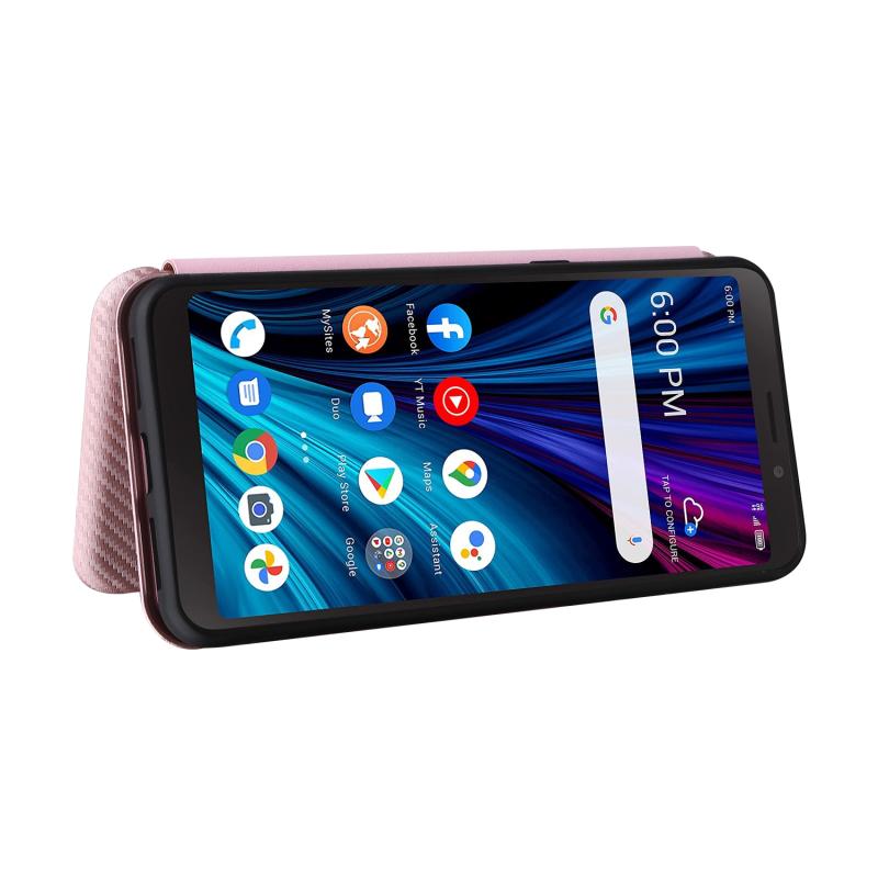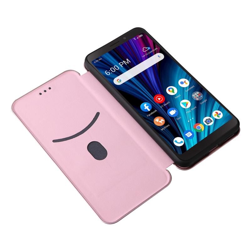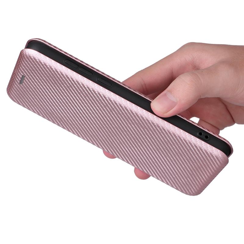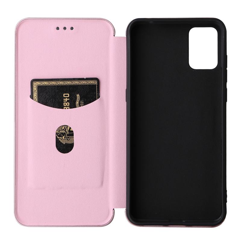 For TCL A3X Carbon Fiber Texture Horizontal Flip Leather Phone Case with Card Slot(Pink)