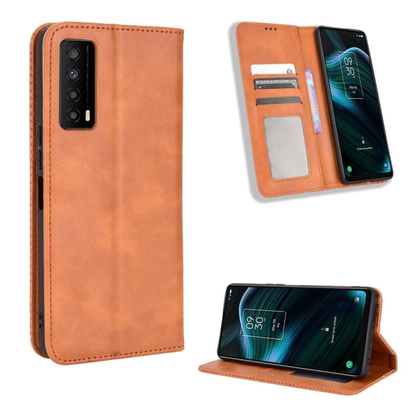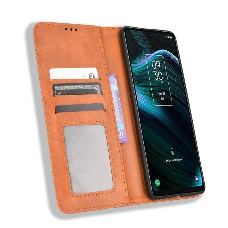 Για TCL Stylus 5G μαγνητική πόρπη ρετρό υφή δερμάτινη θήκη τηλεφώνου (καφέ)