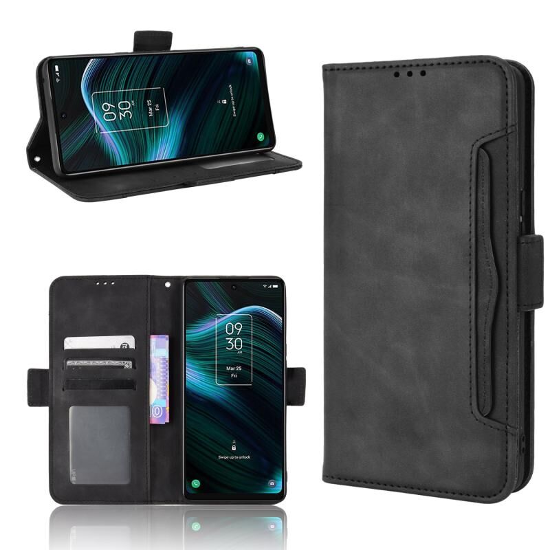 Για TCL Stylus 5G δέρμα αίσθηση μοσχάρι υφή κάρτα υποδοχές δερμάτινη θήκη τηλεφώνου (Μαύρο)