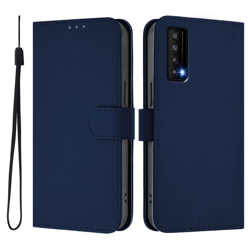 Για TCL Stylus δέρμα δέρμα αίσθηση στερεό χρώμα δερμάτινη θήκη τηλεφώνου με κορδόνι (Ναυτικό μπλε)
