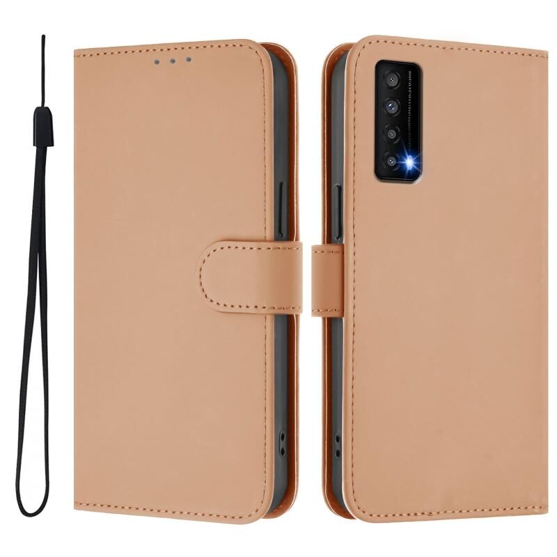 Για TCL Stylus δέρμα δέρμα αίσθηση στερεό χρώμα δερμάτινη θήκη τηλεφώνου με κορδόνι (Nude)
