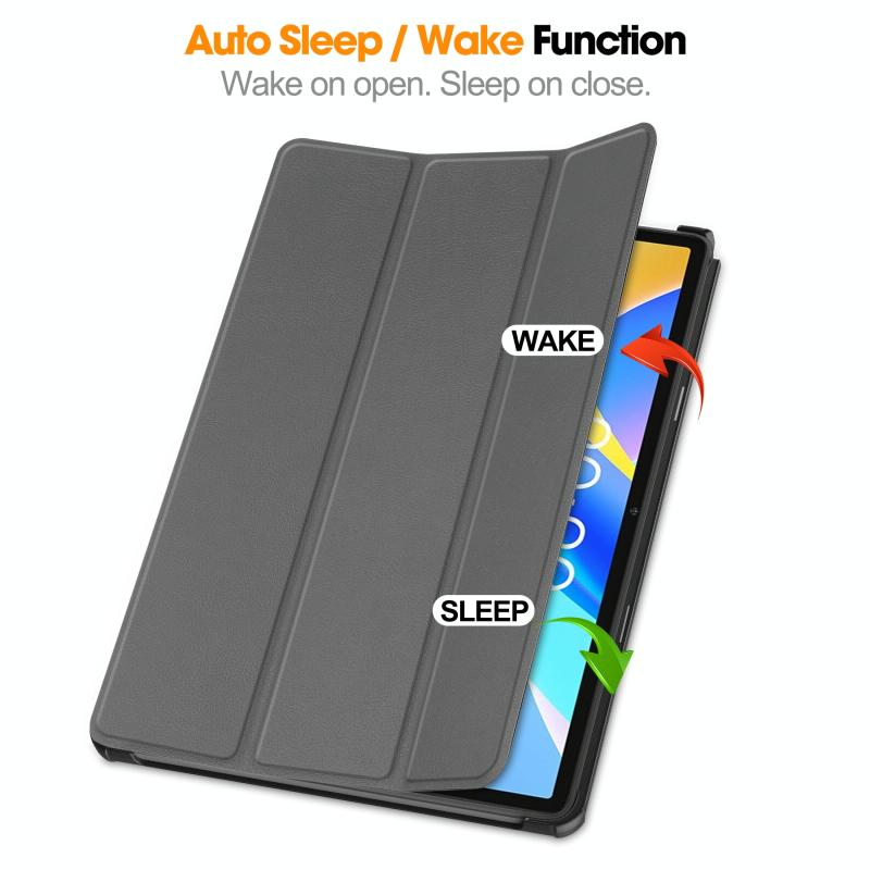 For Teclast M40 Plus Custer Pure Color 3-Fold Holder Leather Tablet Case(Grey)
