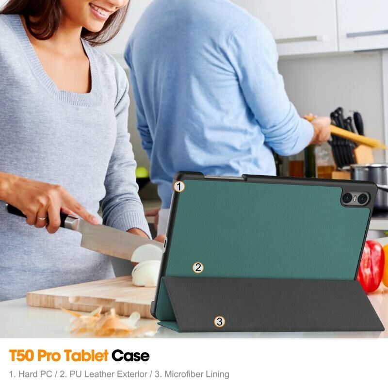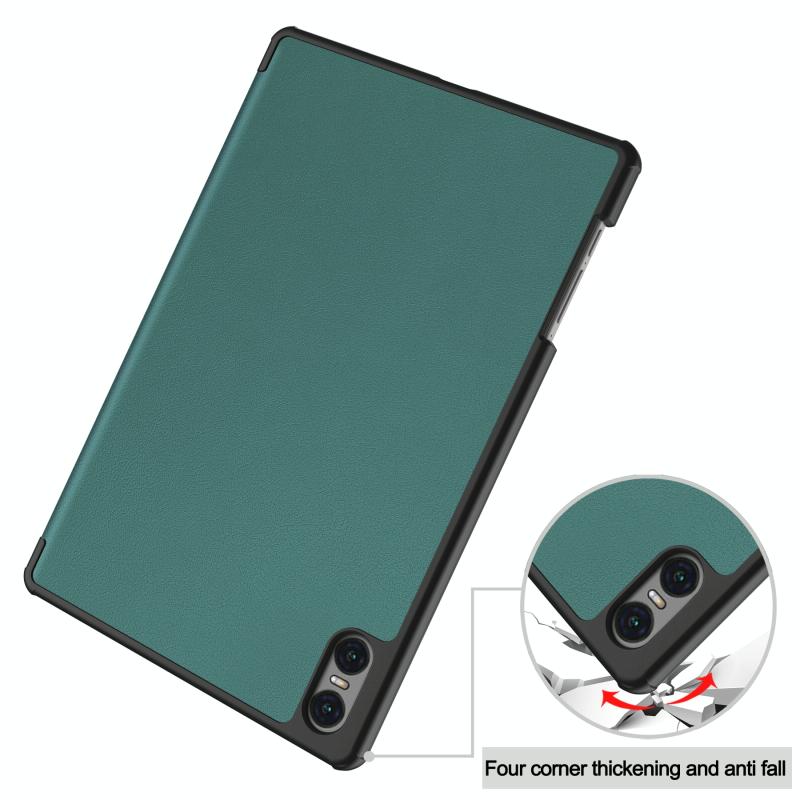 For Teclast T50 Pro Custer Solid Color 3-Fold Stand Leather Tablet Case(Dark Green)