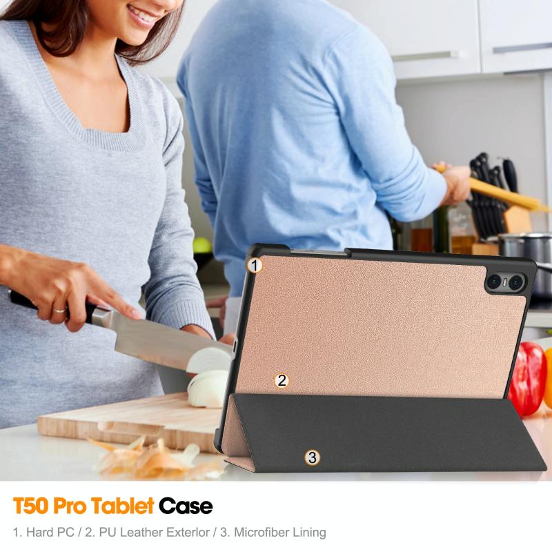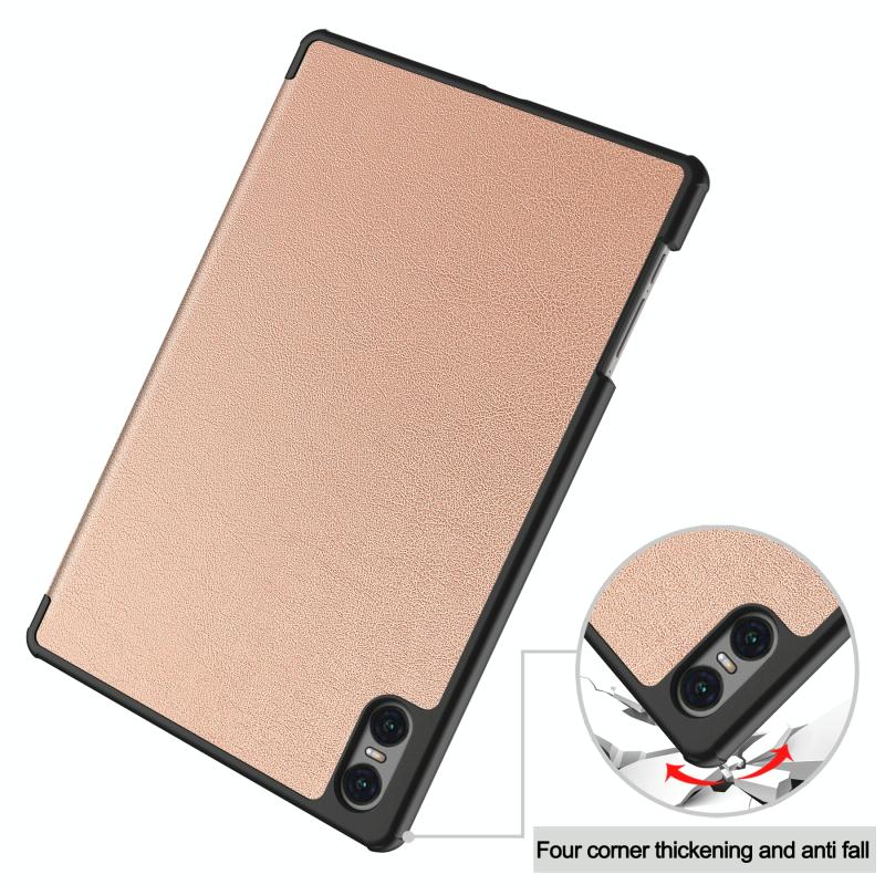 For Teclast T50 Pro Custer Solid Color 3-Fold Stand Leather Tablet Case(Rose Gold)