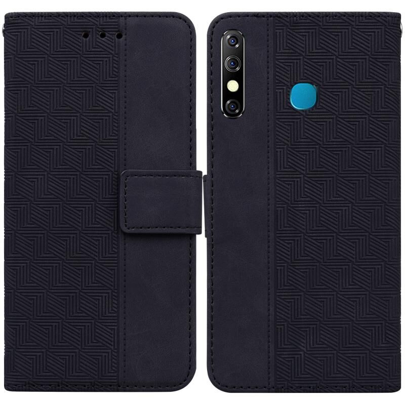 Για Tecno Camon 12 / Spark 4 Γεωμετρική ανάγλυφη δερμάτινη θήκη τηλεφώνου (μαύρο)
