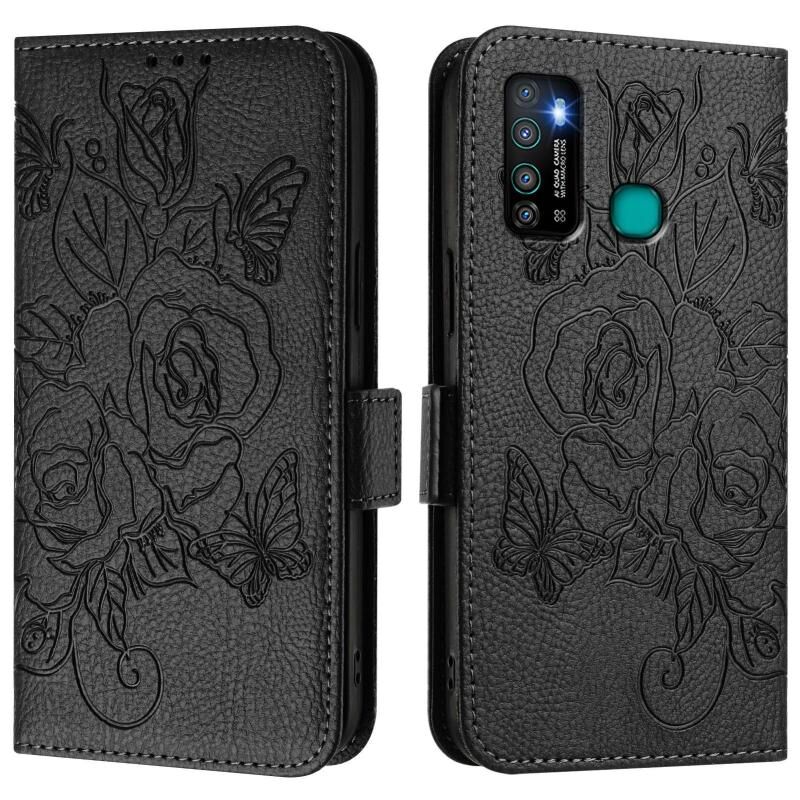 For Tecno Camon 15 / 15 Air Embossed Rose RFID Anti-theft Leather Phone Case(Black)