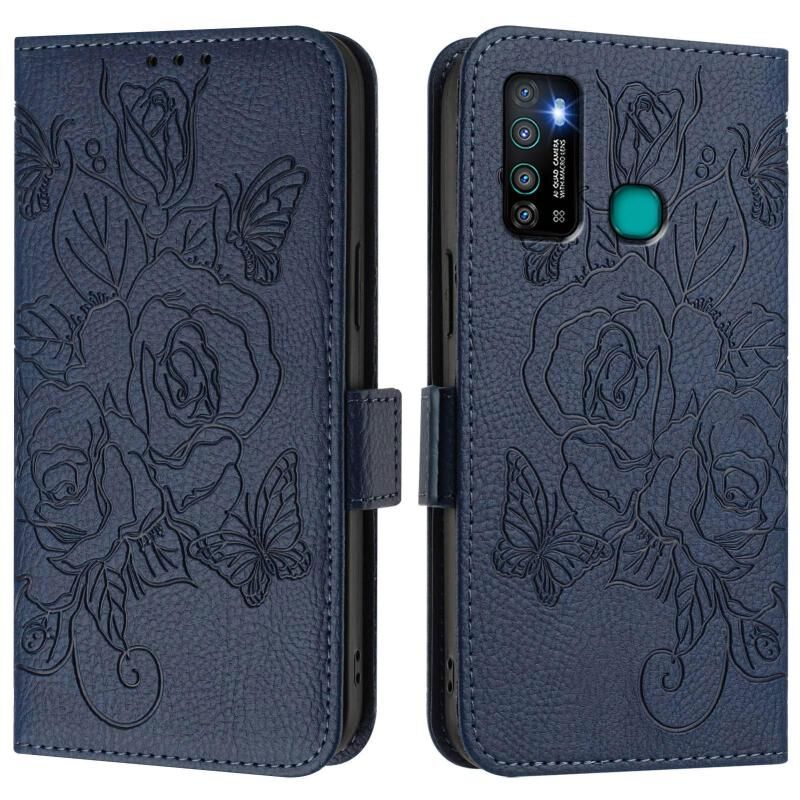 For Tecno Camon 15 / 15 Air Embossed Rose RFID Anti-theft Leather Phone Case(Dark Blue)