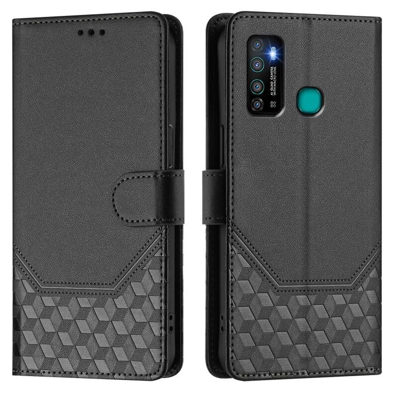 Για Tecno Camon 15 / 15 Air Honeycomb ανάγλυφη RFID δερμάτινη θήκη τηλεφώνου (μαύρο)