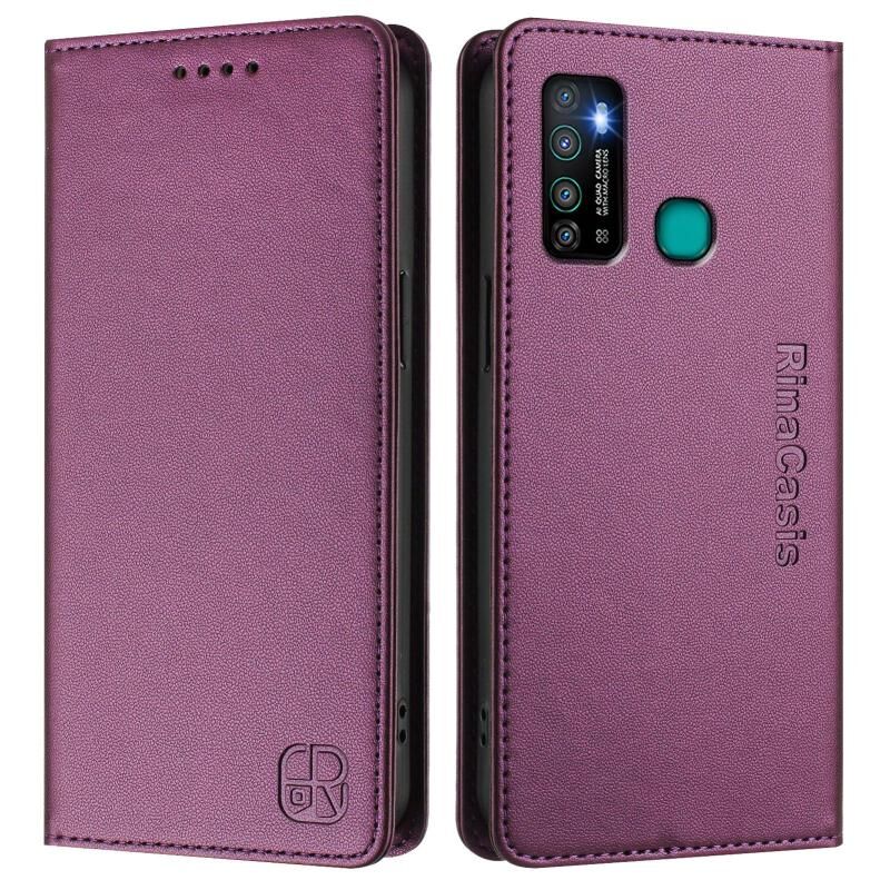 For Tecno Camon 15 / 15 Air RC01 Dual-Folded Magnetic Suction RFID Leather Phone Case(Violet)