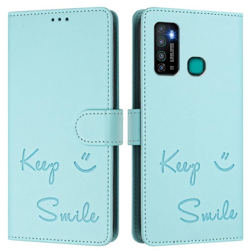 Θήκη τηλεφώνου από δέρμα με ανάγλυφο χαμόγελο RFID για Tecno Camon 15 / 15 Air (Μέντας Πράσινο)