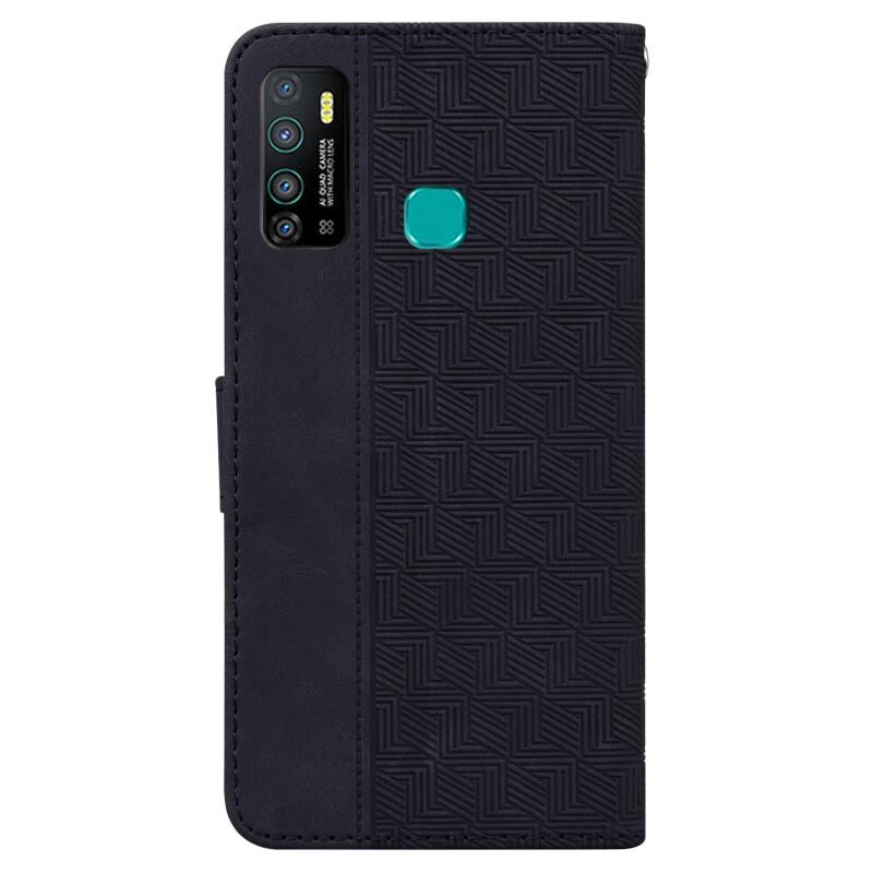 Για Tecno Camon 15 Γεωμετρική ανάγλυφη δερμάτινη θήκη τηλεφώνου (Μαύρο)