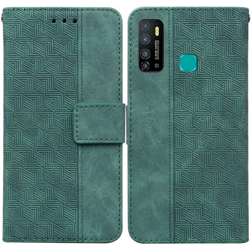 Για Tecno Camon 15 Γεωμετρική ανάγλυφη δερμάτινη θήκη τηλεφώνου (πράσινο)