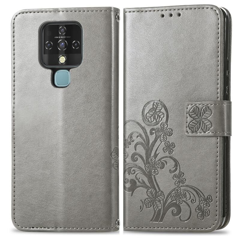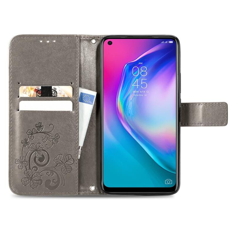 Θήκη δερμάτινη προστασίας κινητού τηλεφώνου για Tecno Camon 16 SE με κουμπωτό κούμπωμα σε σχήμα τριφυλλιού, λουράκι, θήκη για κάρτες, πορτοφόλι και λειτουργία βάσης (Χρυσό ροζ)