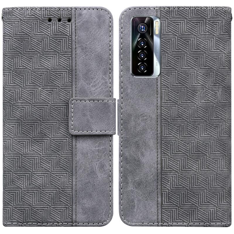 Για Tecno Camon 17 Pro Γεωμετρική ανάγλυφη δερμάτινη θήκη τηλεφώνου (γκρι)