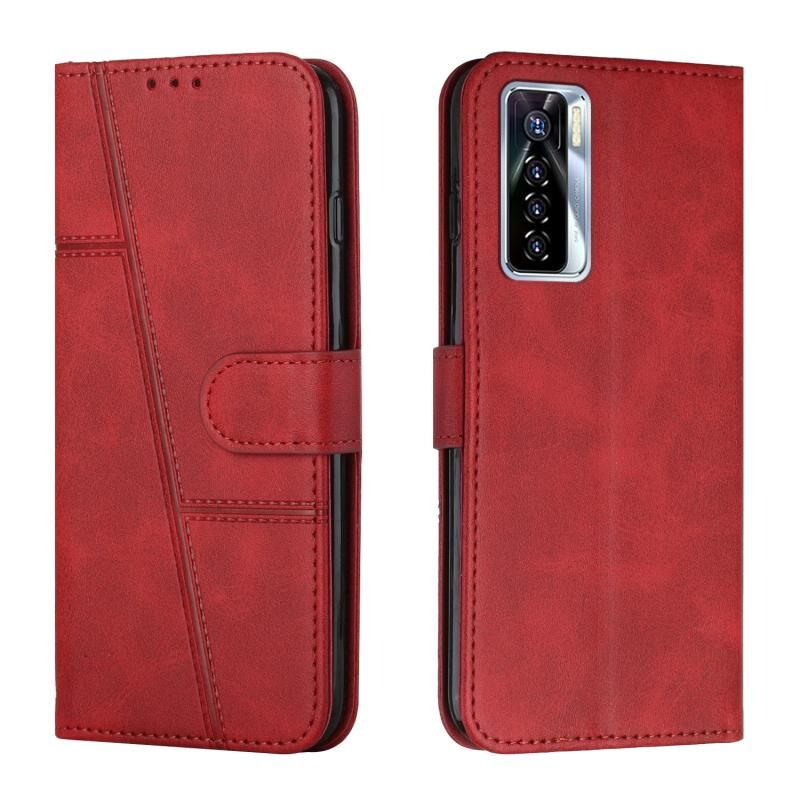 Για Tecno Camon 17 Pro ραφή μοσχάρι υφή πόρπη δέρμα τηλέφωνο υπόθεση (κόκκινο)
