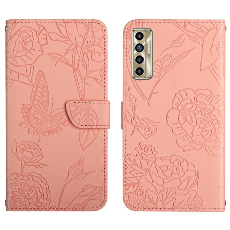Για Tecno Camon 17P HT03 δέρμα Feel πεταλούδα ανάγλυφο Flip δέρμα τηλέφωνο υπόθεση (ροζ)