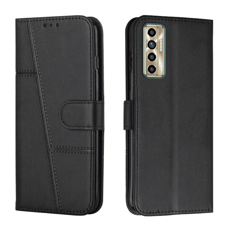 Για Tecno Camon 17P ραφή μοσχάρι υφή πόρπη δερμάτινη θήκη τηλεφώνου (μαύρο)