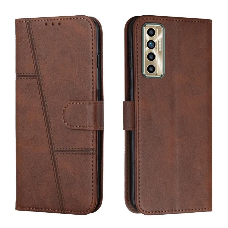 Για Tecno Camon 17P ραφή μοσχάρι υφή πόρπη δερμάτινη θήκη τηλεφώνου (καφέ)