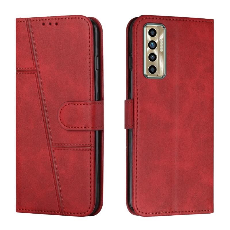 Για Tecno Camon 17P ραφή μοσχάρι υφή πόρπη δερμάτινη θήκη τηλεφώνου (κόκκινο)