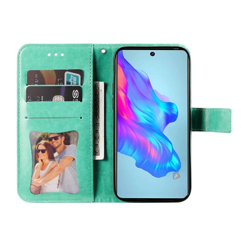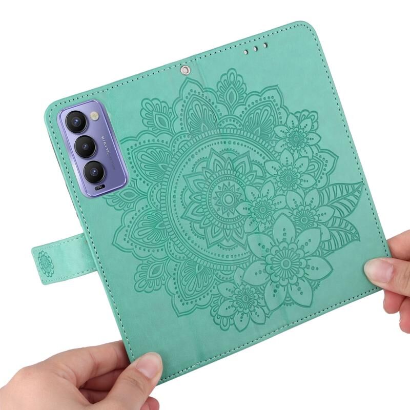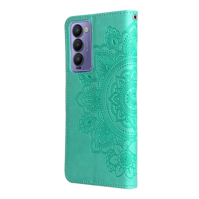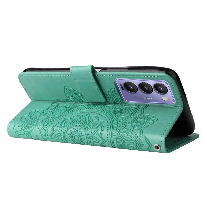 Για Tecno Camon 18/18P 7-πέταλο λουλούδια ανάγλυφο Flip υπόθεση τηλεφώνου δέρμα (πράσινο)