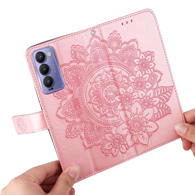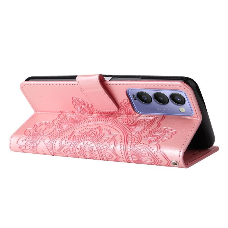 Για Tecno Camon 18/18P 7-πέταλο λουλούδια ανάγλυφο Flip υπόθεση τηλεφώνου δέρμα (Rose Gold)