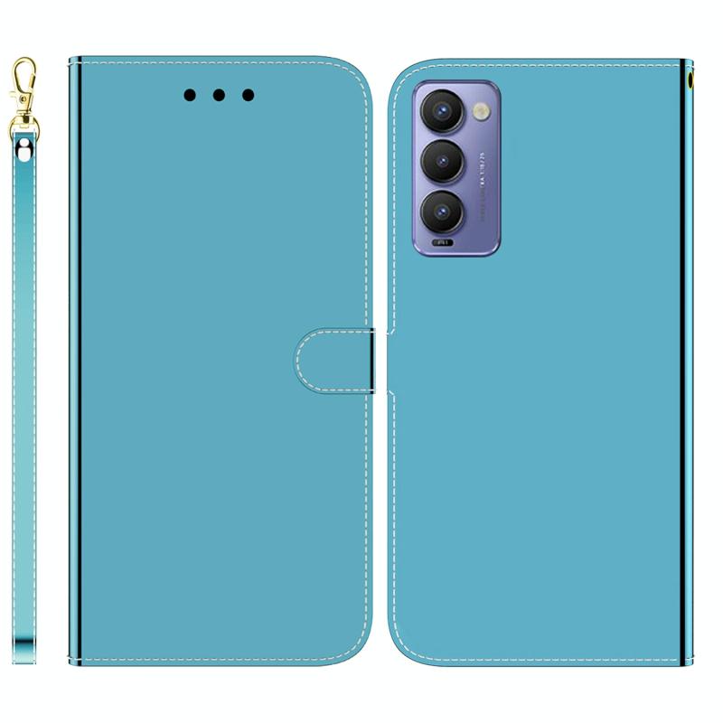 Θήκη τηλεφώνου από δέρμα με οριζόντιο άνοιγμα και απομίμηση καθρεπτικής επιφάνειας για Tecno Camon 18 / 18P (Μωβ)