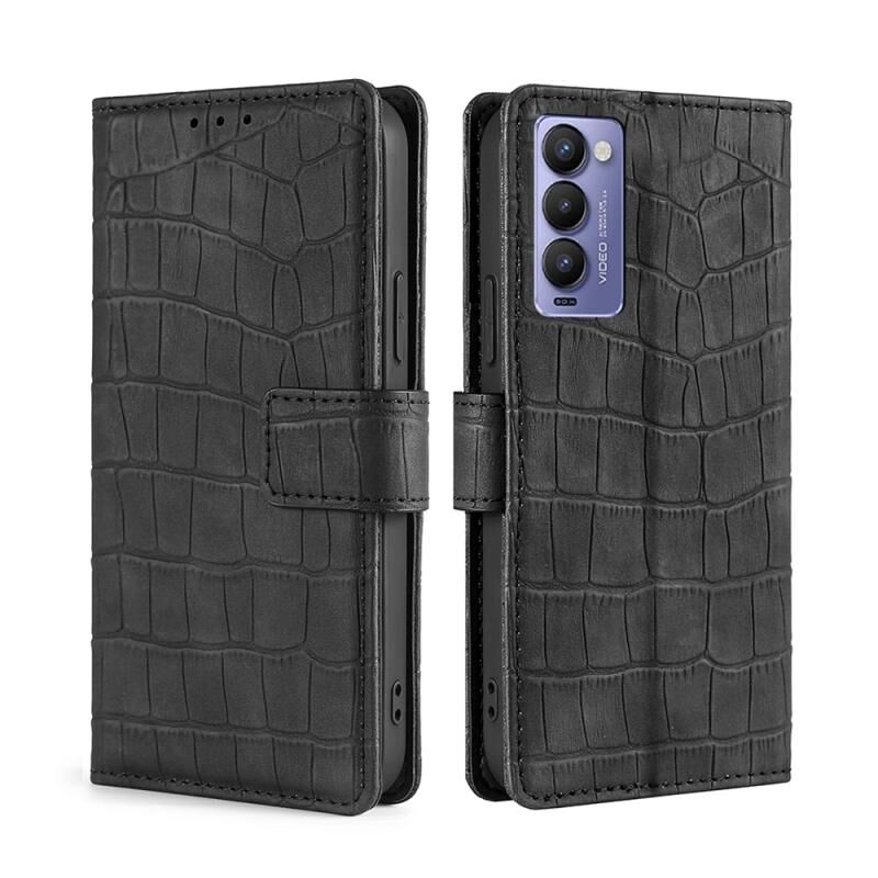 Θήκη τηλεφώνου από δέρμα με μαγνητικό κούμπωμα και υφή κροκόδειλου για Tecno Camon 18 / 18P (Μαύρο)