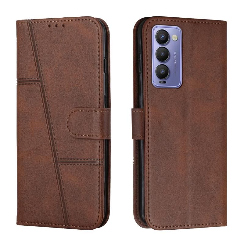 Για Tecno Camon 18 / 18P ραφή μοσχάρι υφή πόρπη δερμάτινη θήκη τηλεφώνου (καφέ)
